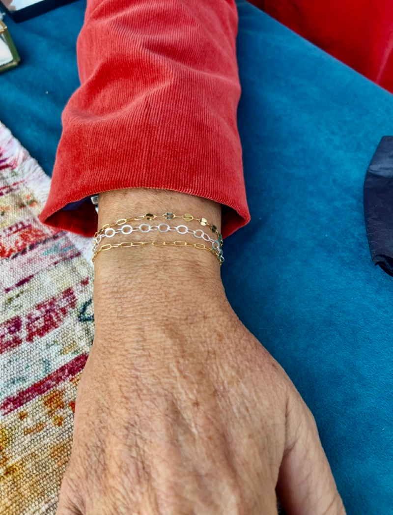 Celebrate connection with a timeless touch. Amanda Stringer Jewelry now offers permanent jewelry—delicate, custom-fit chains that are welded on for a seamless, clasp-free look. Choose from a curated selection of sterling silver or 14K gold-filled chains and create a piece that symbolizes friendship, love, or simply your own unique style.