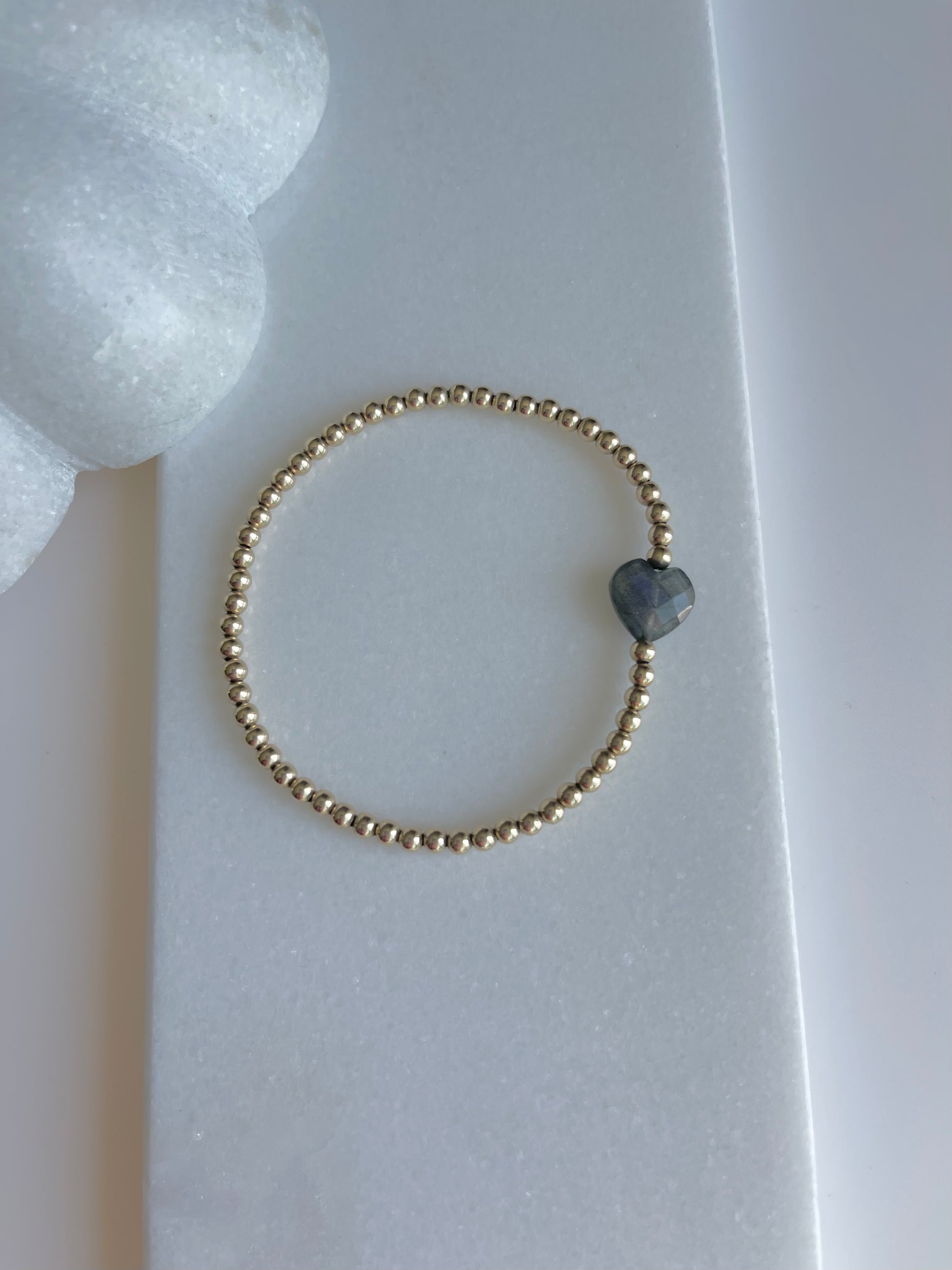 4mm gold fill beads with labradorite heart strung in center. 7 inches long.