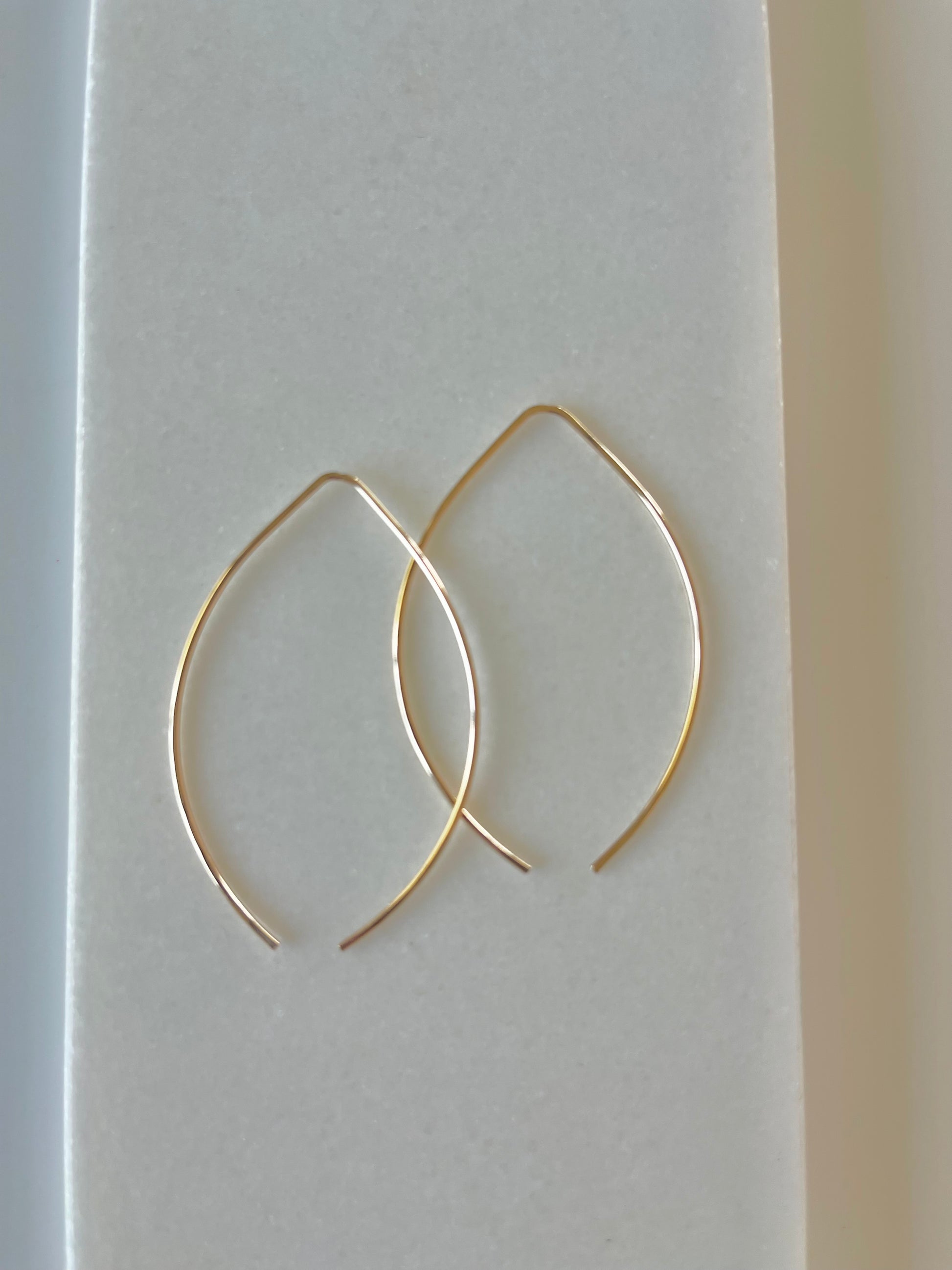 I love these everyday earrings! 14k gold fill wire slides easily into the lobe for a classic, polished, and effortless look. They are light as a feather and are 2 inches in length.