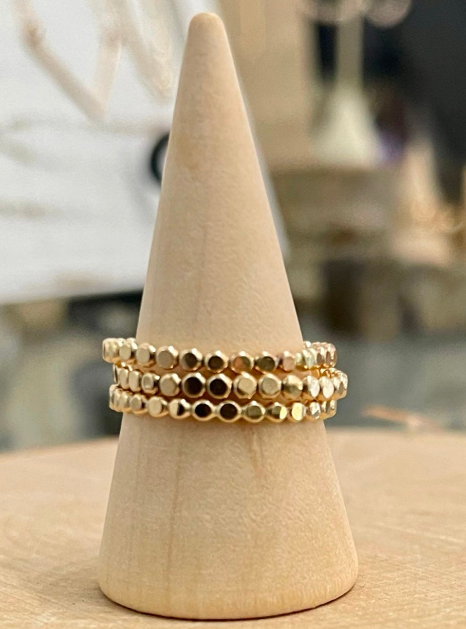 14K gold filled dot ring, perfect for wearing alone or stacked. Sold as a single ring (stack of three shown in photo).